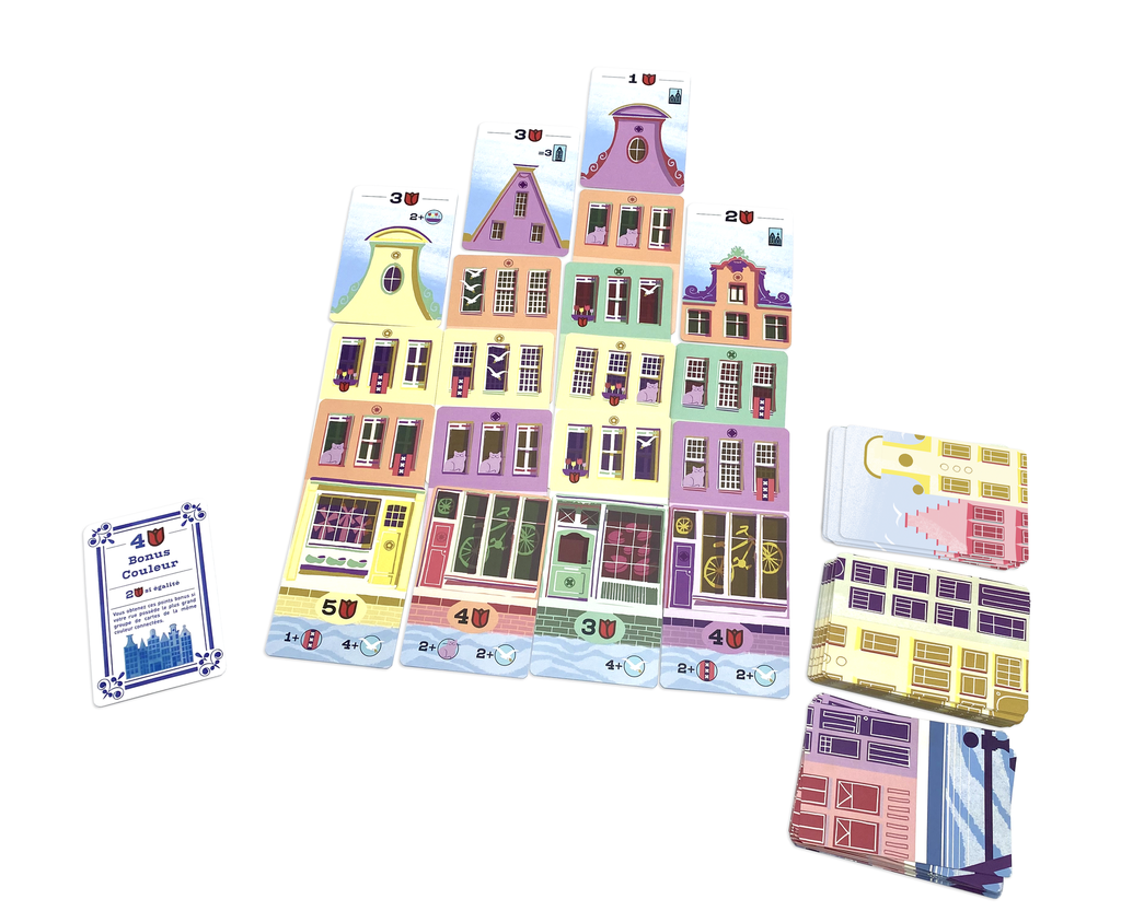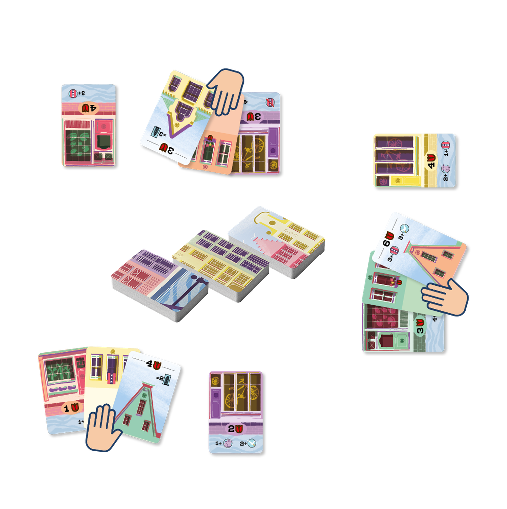 S'inscrireDans Bellevue, façonnez votre propre rue en alignant de magnifiques maisons flamandes le long du canal. À chaque tour, choisissez une carte à poser… puis passez le reste de votre main à vos adversaires. Objectifs, couleurs, toits, boutiques : chaque décision influence la valeur de votre rue et vos chances de l’emporter.