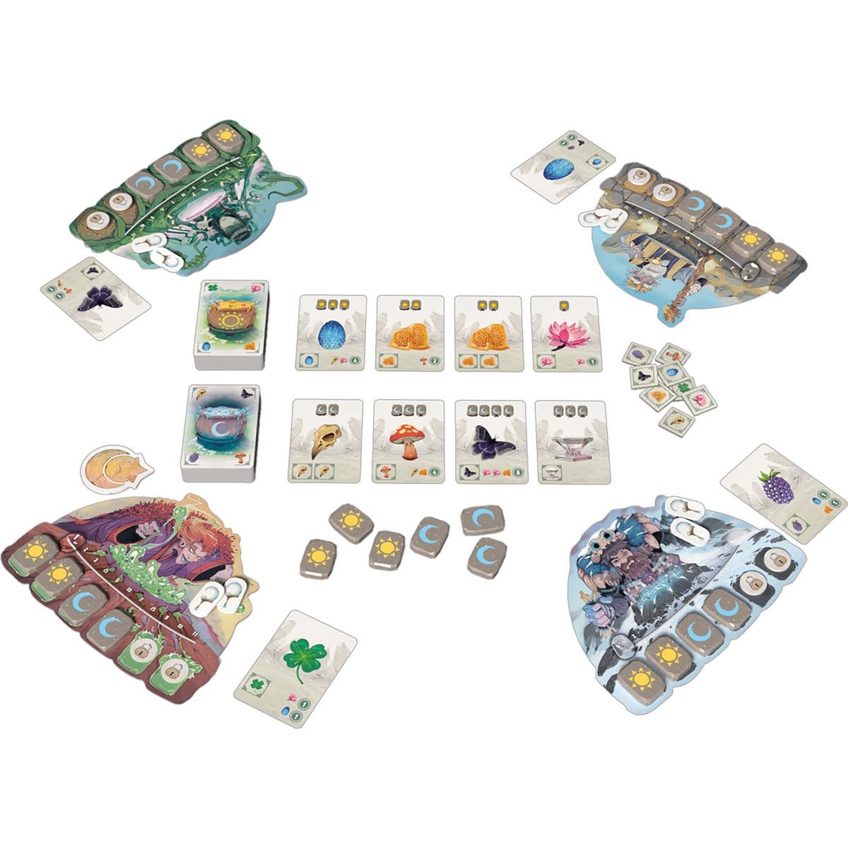 Utilisez vos runes Soleil et Lune pour payer les coûts d’ingrédients, formez des colonnes cohérentes, et progressez sur votre piste pour débloquer des bonus.