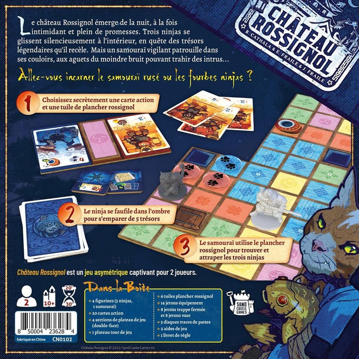 • À LA RECHERCHE DE TRÉSORS... OU ARRÊTER LES VOLEURS : Les joueurs ninja tentent de localiser le fameux trésor caché dans le château Nightingale, tandis que les samouraïs utilisent le son, la déduction et la vigilance pour traquer et capturer les intrus avant qu’il ne soit trop tard.