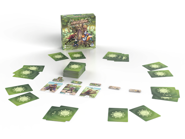 Dans Forest Leader, cinq clans d’animaux (Renard, Lapin, Blaireau, Ours et Cerf) se disputent le trône de la forêt. À chaque tour, vous jouez des cartes pour influencer la Cour Des Chefs et vos Tribus.