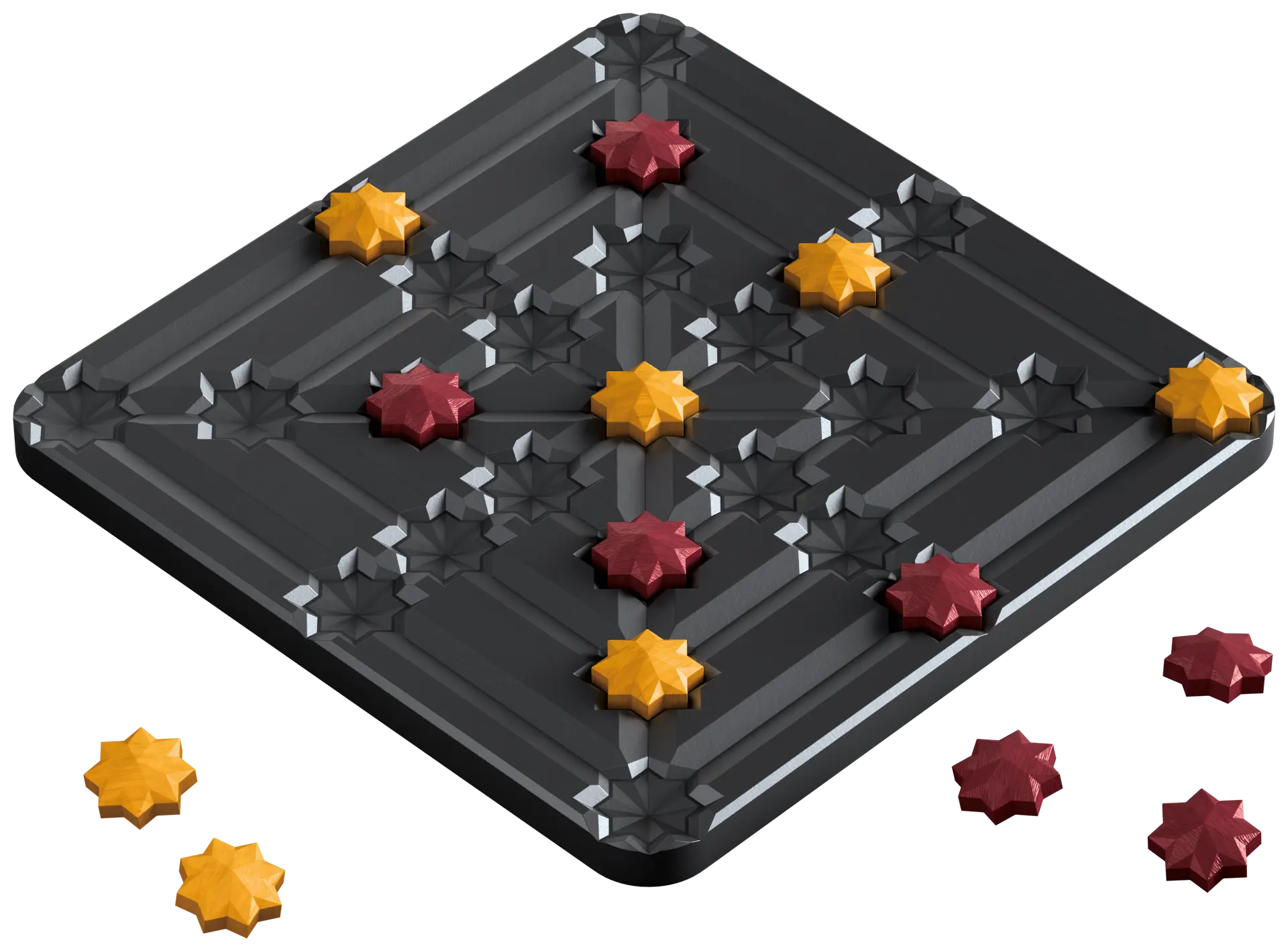 S'inscrireChaque joueur commence avec 7 étoiles. À votre tour, vous pouvez placer une nouvelle étoile de votre couleur sur le plateau ou déplacer une étoile de votre couleur déjà placée. Si vous déplacez une étoile, vous vous déplacez sur la première case reliée par une ligne. Si cette case est vide, rien ne se passe. Si elle est occupée, déplacez l'étoile, quelle que soit sa couleur. Vous ne pouvez déplacer qu'une seule étoile à la fois. Vous pouvez déplacer les étoiles hors du plateau.